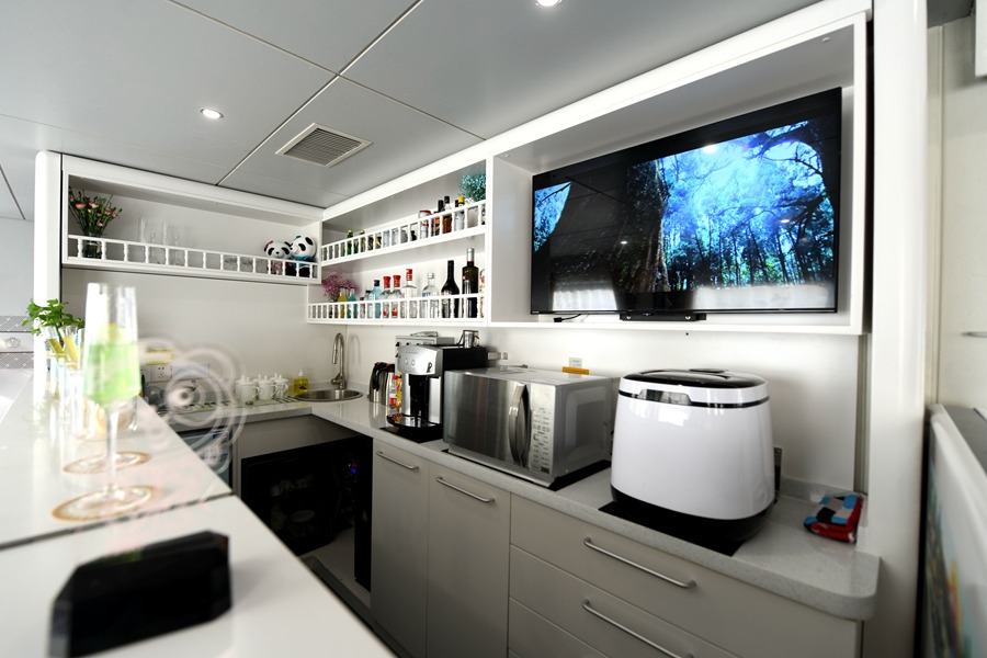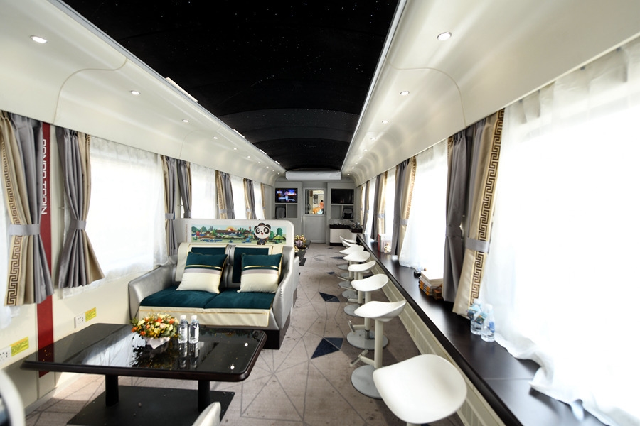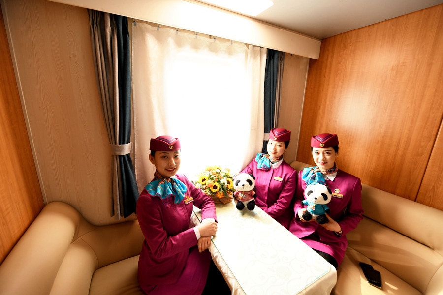 在硬件设备上,“熊猫专列”较普通旅游列车增设了安全智能电子锁具、智能服务系统、观景长桌、点歌、影音娱乐、USB充电装置、恒温淋浴系统等人性化服务设施。在列车服务上,“熊猫专列”全面推行了“点对点,个性化”定制服务,除提供日常列车乘务外,还引进了星级宾馆“黄金管家”服务模式,专门配备“熊猫管家”,实现了工作人员固定车厢和全列流动相结合的全方位服务。为满足旅游团队出行个性化需求,“熊猫专列”还可提供下午茶会、主题歌会、鸡尾酒会等定制服务。