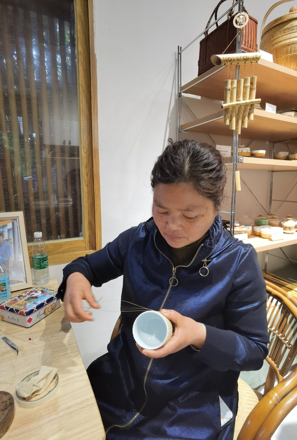 如今,走进竹艺村的竹编博物馆,格式各样精美的竹编创意品让人目不暇接。与瓷器结合制作的茶具,与知名品牌联合打造的竹编时尚手包,竹材制作的造型独特的家居装饰……每一样都与生活息息相关又创意十足,价格从几十元到数千元不等。原本无人问津的竹编制品在创意的包装下成为人们争相购买的旅游文创产品。