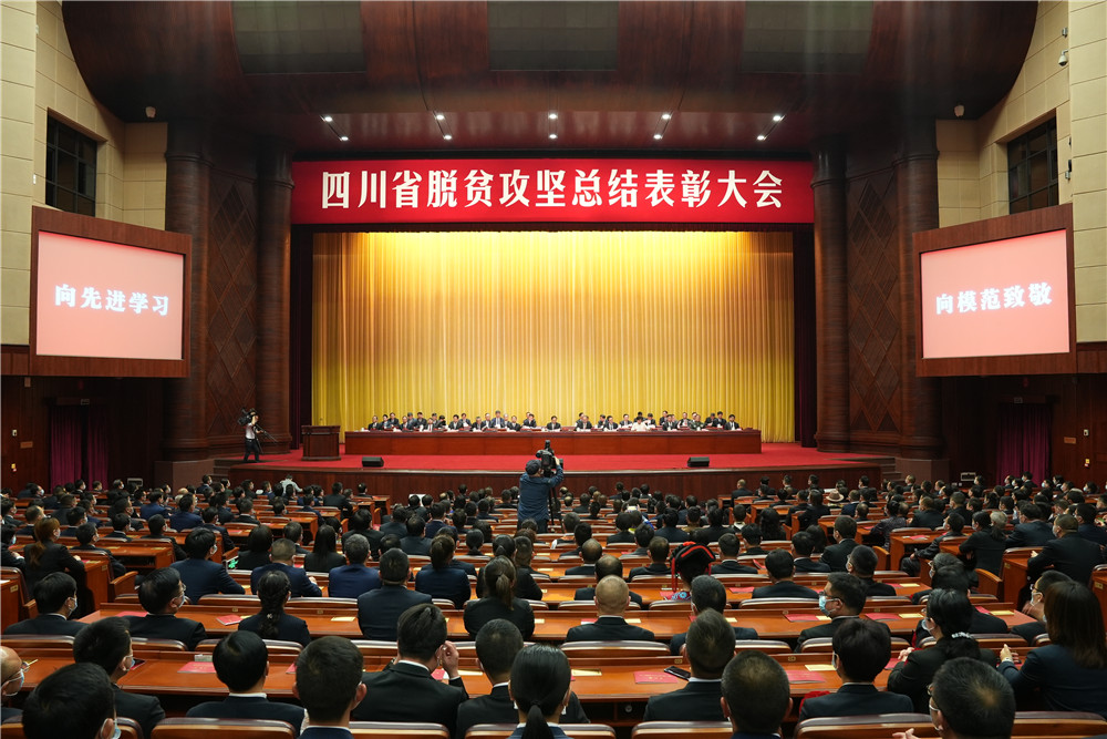 会议宣布,在以习近平同志为核心的党中央的坚强领导下,在中央和国家机关各部委、各兄弟省份和社会各界的支持帮助下,通过全省上下的艰苦努力,我省脱贫攻坚战取得全面胜利,现行标准下625万农村贫困人口全部脱贫,88个贫困县全部摘帽,11501个贫困村全部出列,区域性整体贫困得到解决,绝对贫困全面消除,兑现了向全省人民的庄严承诺,向习近平总书记、党中央交出了一份合格答卷!这场波澜壮阔、气吞山河的伟大战役,书写了四川战胜贫困、圆梦小康的壮丽篇章,在我省发展史上留下了浓墨重彩的一笔,具有重要里程碑意义!