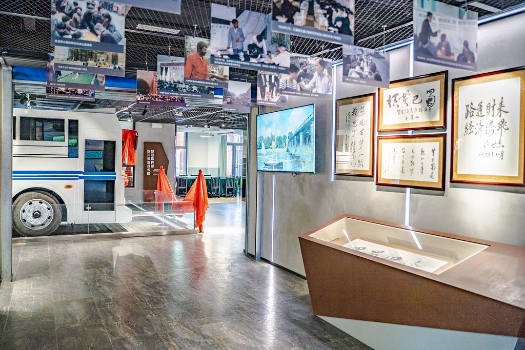 这栋建筑就是成渝高速公路历史展示馆,占地面积超过2500平方米,2020年建成,再现四川首条高速公路——成渝高速公路建设的峥嵘岁月。在成渝高速的筑路过程中,约有三万名建设者投身其中,劈山斩水筑成这条腾飞之路。