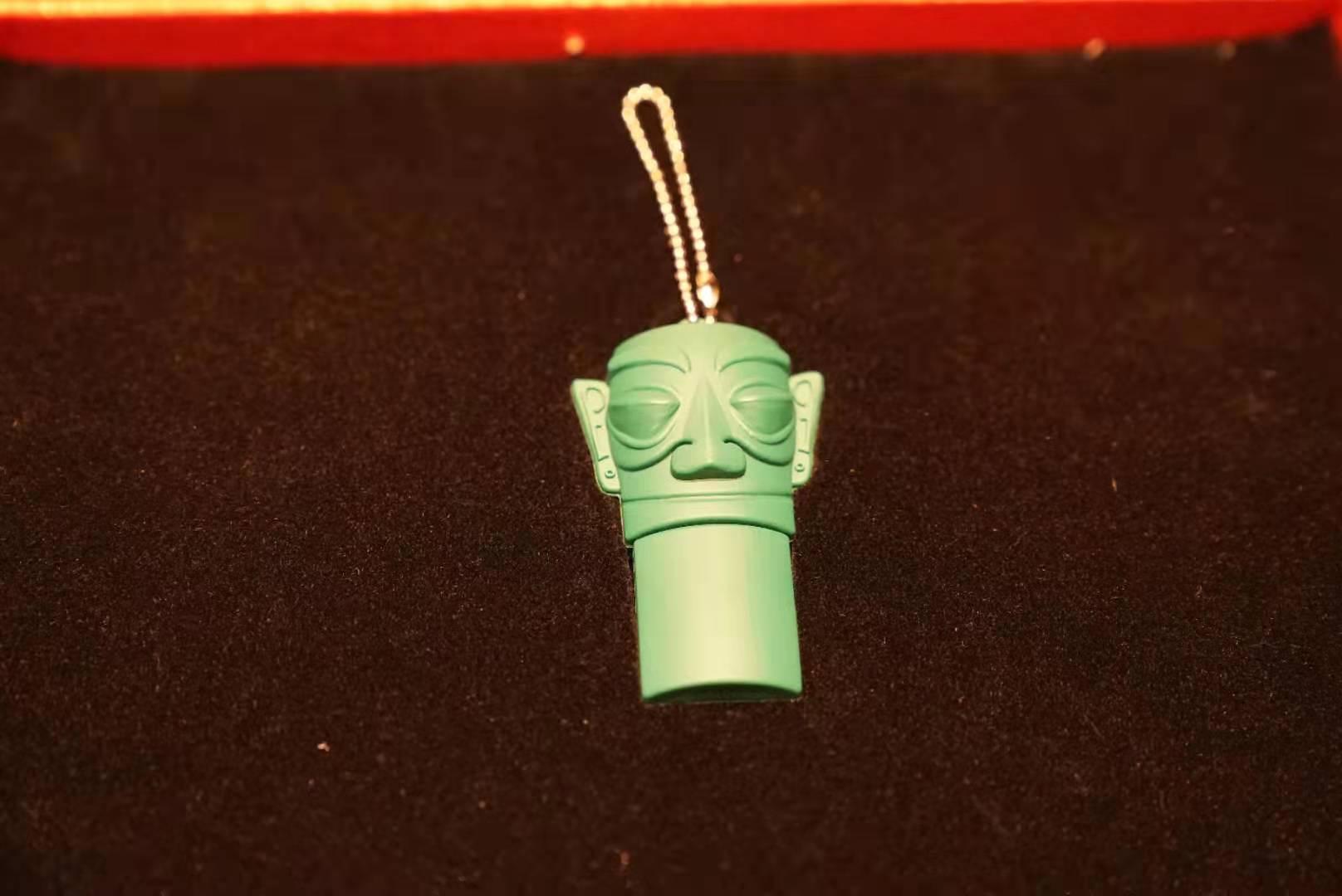只见一个迷你的三星堆“青铜面具”U盘被嵌在礼盒中,一方面它代表着灿烂的古蜀文化,是四川最亮眼的名片之一;另一方面它装着由四川广播电视台精心制作的《山海万里粤川情》专题片。片中呈现的一个个暖心故事、一幕幕温暖场景,生动展现了粤川兄弟携手奔康的山海深情,表达了四川人民对广东亲人的真挚感谢和崇高敬意。