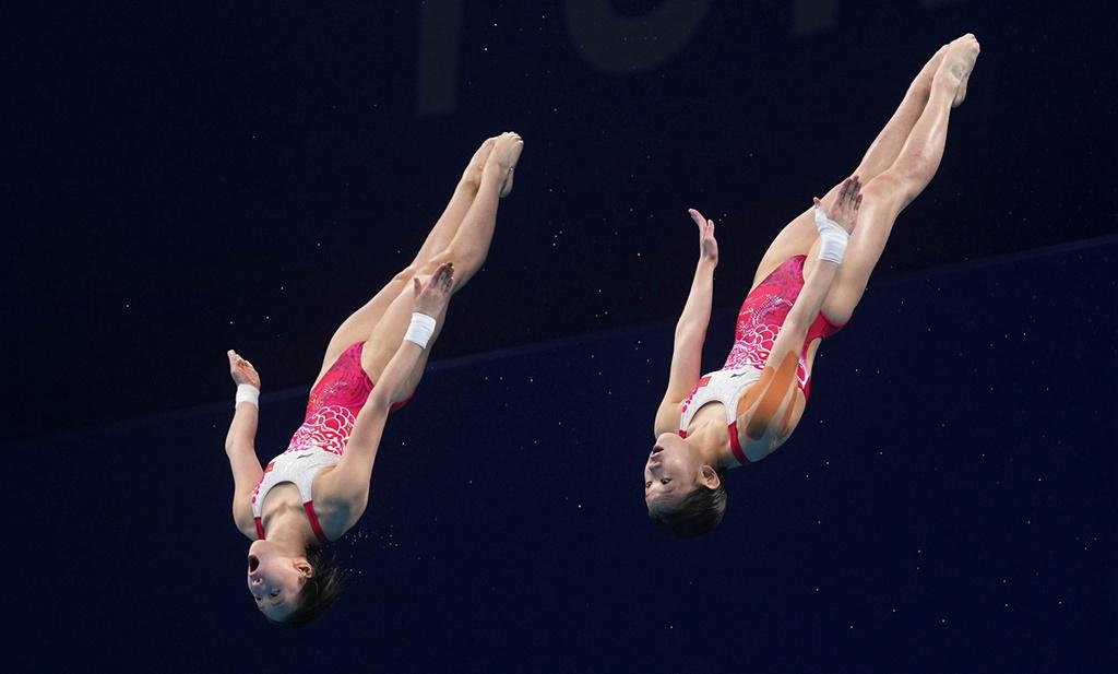 7月27日,中国选手陈芋汐/张家齐在比赛中。图/新华社