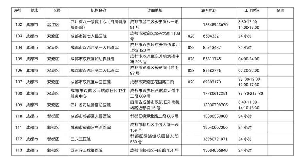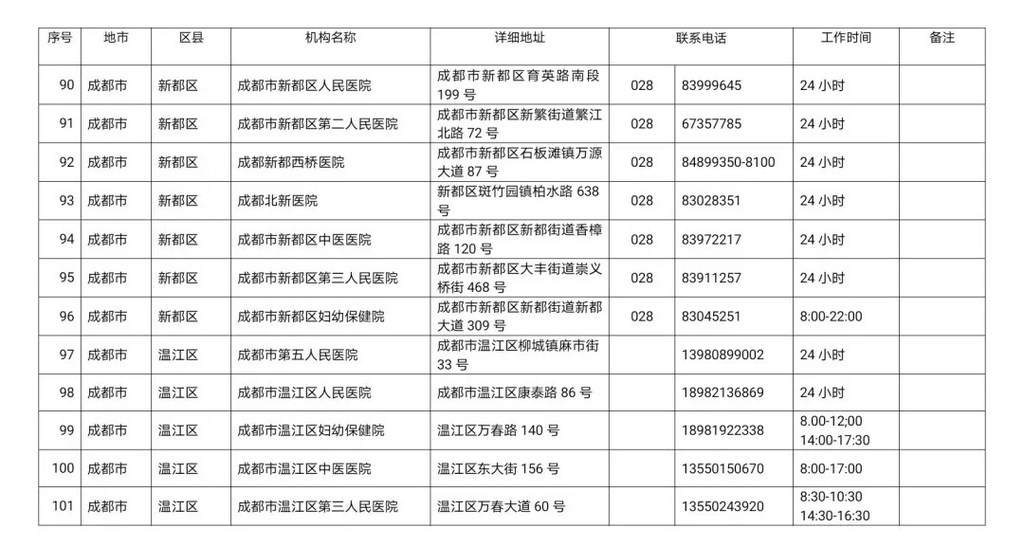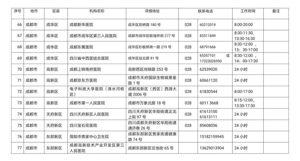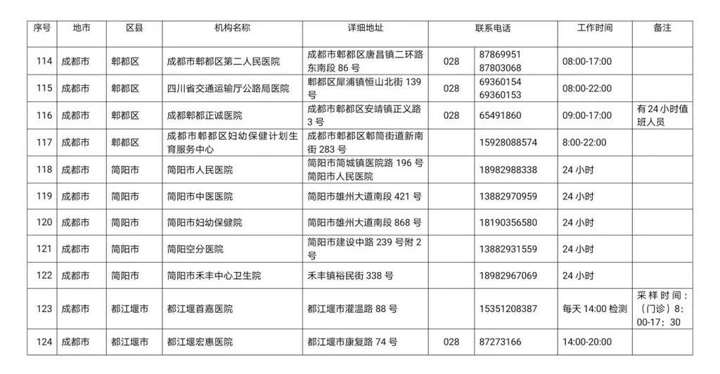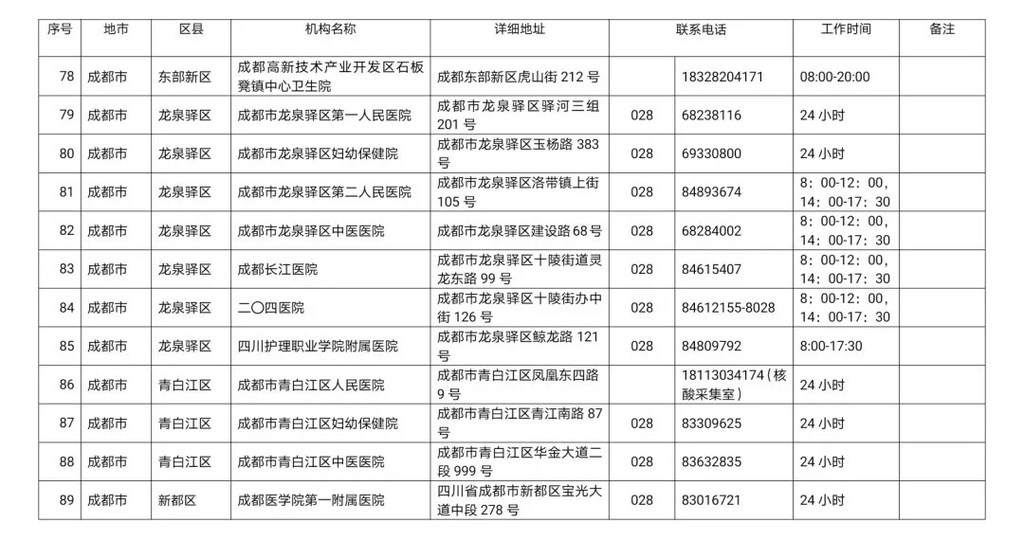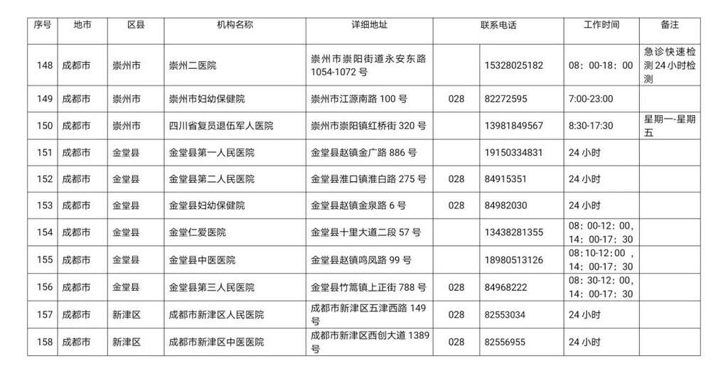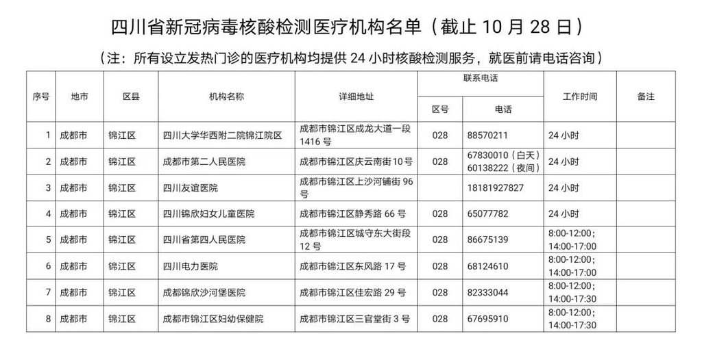 最新!四川省新冠病毒核酸检测医疗机构名单公布!