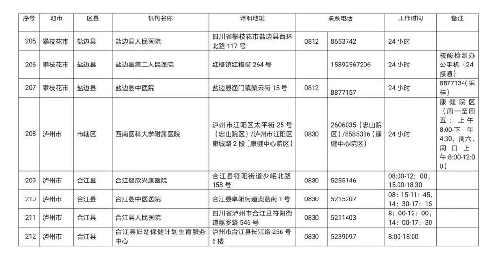 为进一步做好我省疫情防控工作,方便群众及时就近进行新冠病毒核酸检测,四川疾控现将四川省新冠病毒核酸检测医疗机构名单公布如下: