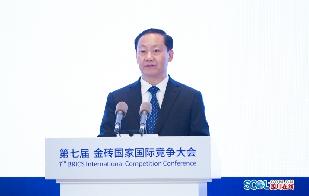 四川在线综合消息 今年是金砖国家合作15周年,11月16日,第七届金砖国家国际竞争大会开幕式以线上方式举行,由国家市场监督管理总局、四川省人民政府联合承办,设北京、成都两个会场。国务委员、国务院反垄断委员会主任王勇在北京会场出席开幕式并致辞。四川省委书记彭清华在成都会场致辞。巴西经济防务行政理事会主席马塞多、俄罗斯联邦反垄断局局长沙思科利斯基、印度竞争委员会主席古普塔、南非竞争委员会主席博纳科勒在各自国家会场出席并致辞,最高人民法院常务副院长贺荣在北京会场致辞。国家市场监督管理总局局长、国务院反垄断委员会副主任张工主持开幕式,并介绍《金砖五国竞争机构负责人成都联合声明》有关情况。