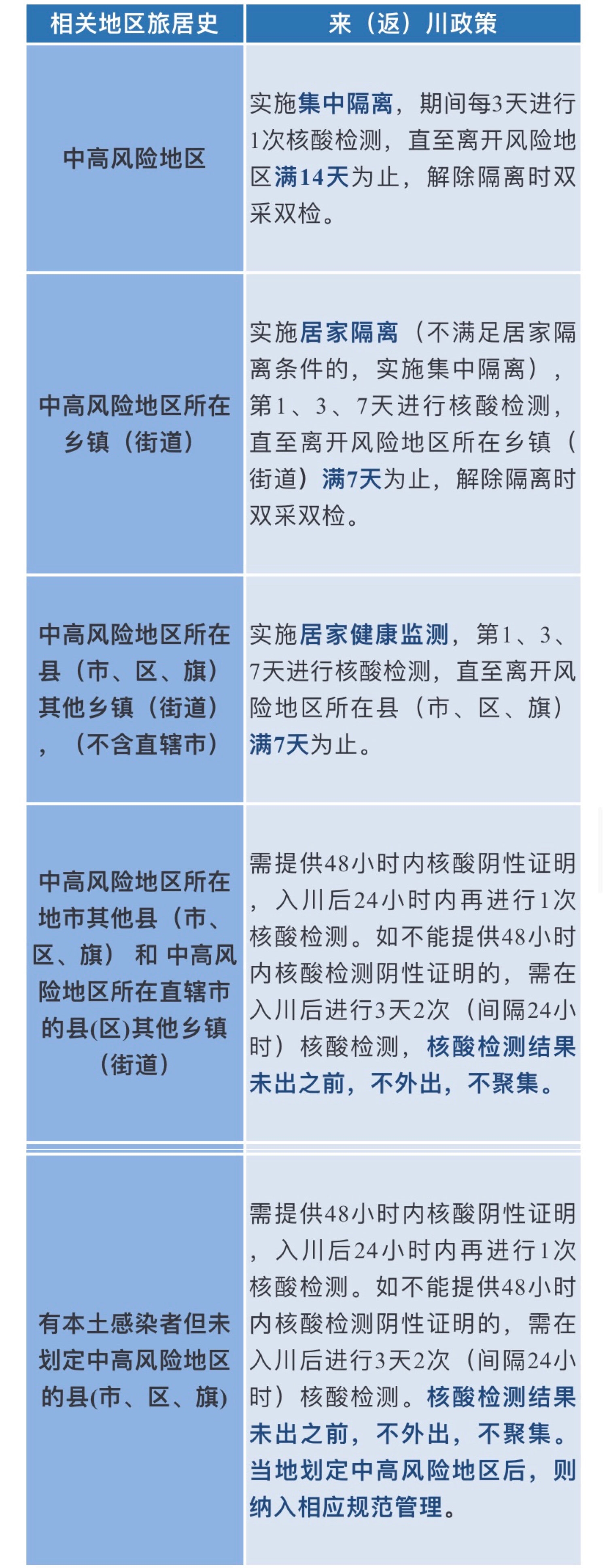 来(返)川人员要主动参与疫情防控工作,积极履行防控义务,做好个人防护,配合落实疫情防控措施。