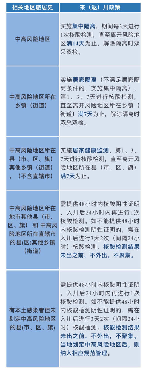来(返)川人员要主动参与疫情防控工作,积极履行防控义务,做好个人防护,配合落实疫情防控措施。