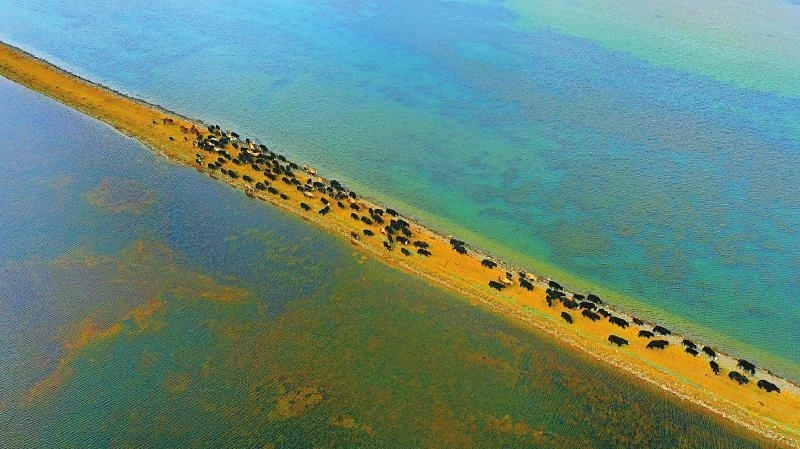 从石渠县城出发,沿国道345线一路向北,白雪覆盖下的扎溪卡草原还在沉睡。上百公里的路程并不孤单,一路上,采访小分队遇见了狐狸、赤麻鸭、胡兀鹫、黑颈鹤等野生保护动物,仿佛置身于一个巨大的天然动物园。到达长沙贡玛乡政府所在地后,车辆驶入乡道、村道,直至无路可走的草原湿地。