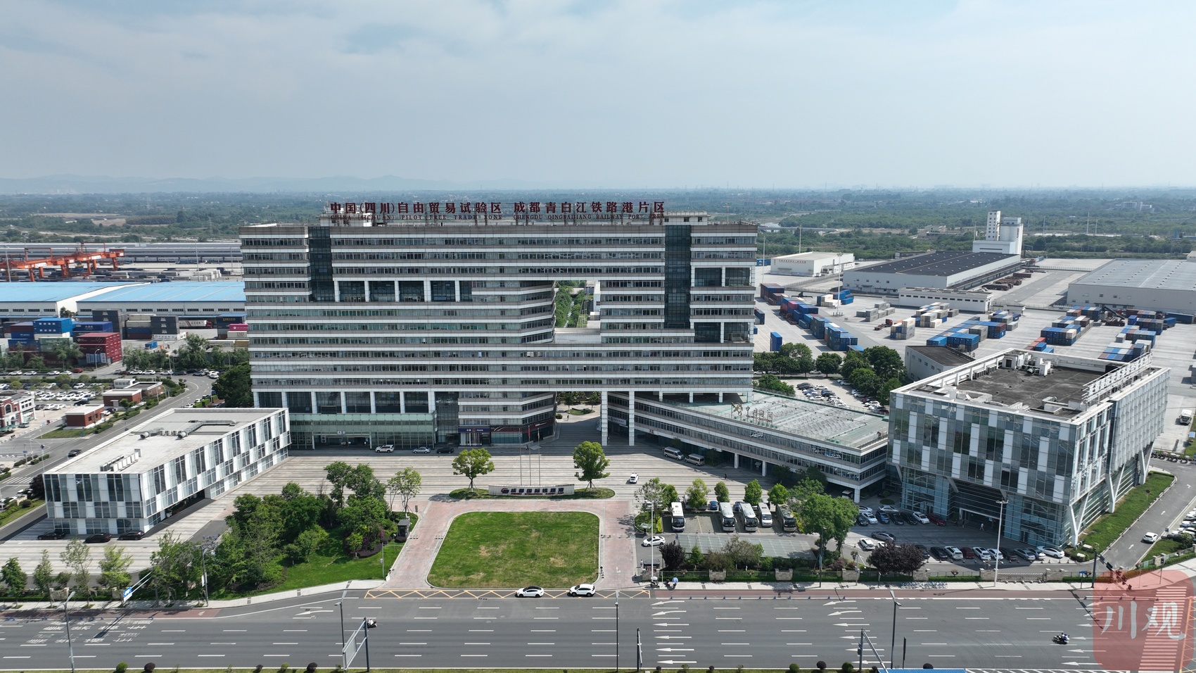 驱车行至现代物流大厦,这里是成都国际铁路港整个区域的中心位置,也是目前港区内的制高点。站在楼上四处环顾,铁路港独有的风景一览无余。目之所及,成都铁路口岸、成都铁路集装箱中心站、亚蓉欧国家(商品)馆、综合保税区、国际贸易产业园区次第布局,这与5年前已是大相径庭。