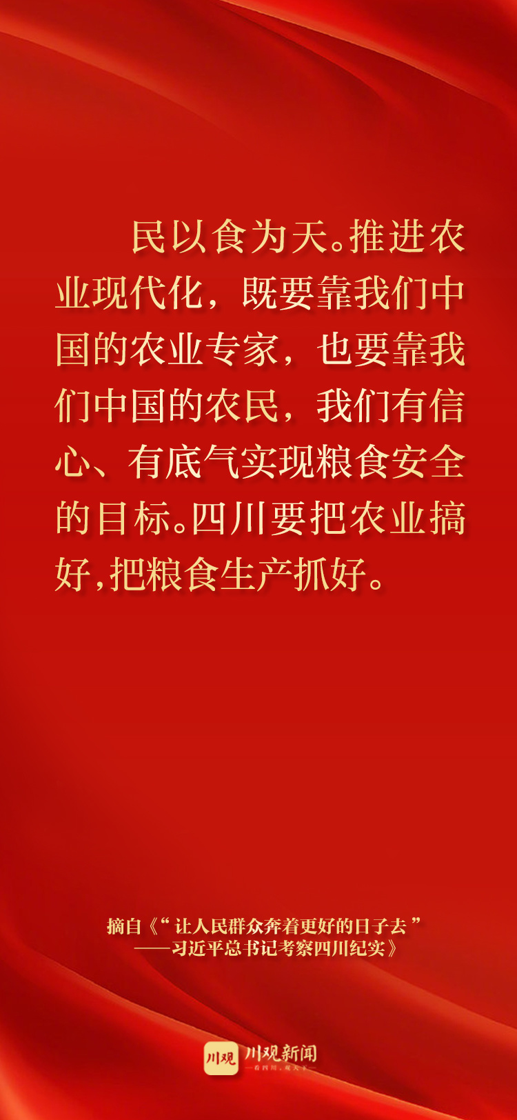 时间:2022-06-12 15:07:29 来源:川观新闻“四川我来过多次,不少地方都走过。天府之国,真是一个好地方。在当前统筹疫情防控和经济社会发展的背景下,我再来这里看看。” 6月8日,仲夏时节,习近平总书记赴四川考察。 这是党的十九大以来总书记第二次到四川考察调研。 四川之行,总书记有哪些寄语?一组学习海报,与您一起领会。