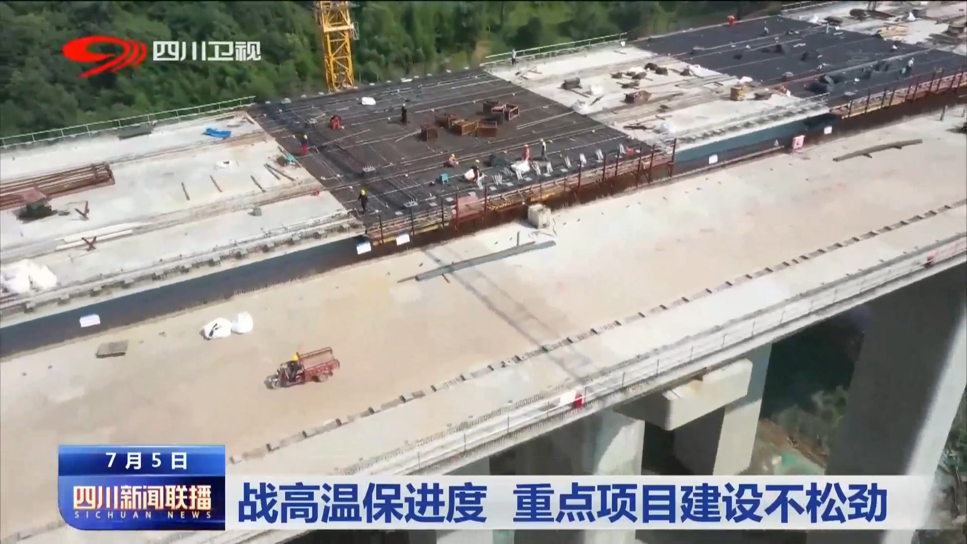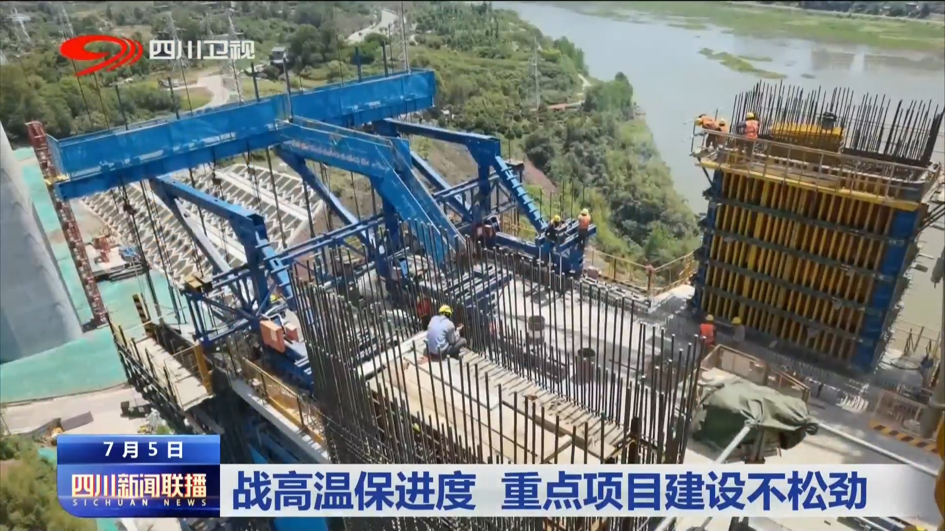 时间:2022-07-06 23:15:43 来源:四川观察省气象台发布高温蓝色预警,从今天起至7月9日,盆地大部分地区最高气温达到35摄氏度,部分地区还将超过38摄氏度。迎战酷暑,我省各地重点工程建设不松劲,在高温“烤”验中,项目进度稳步有序推进。