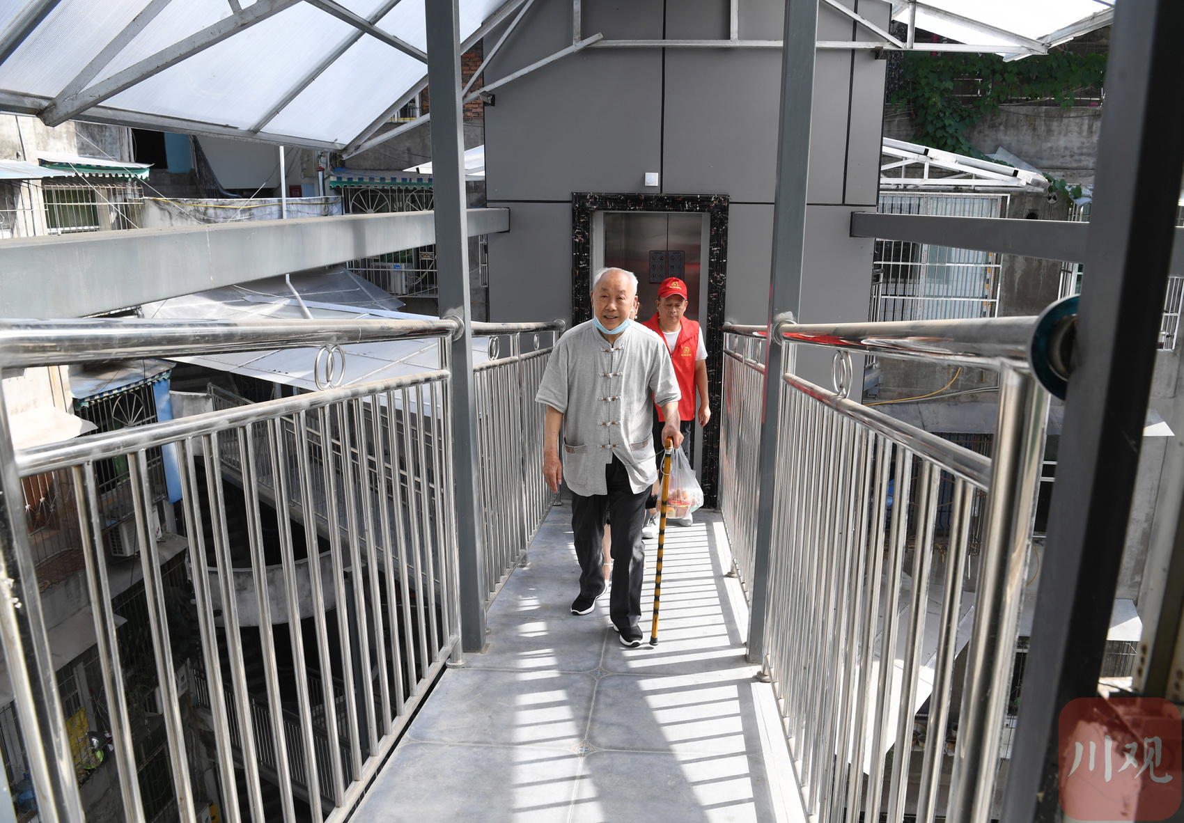 在通江县壁州街道牌坊街社区,91岁的何万章家住农行职工宿舍6楼,小区没安上电梯前,他曾经连续一个星期没下过楼。如今,他一天上下楼3次,夕阳生活过得更加舒心。