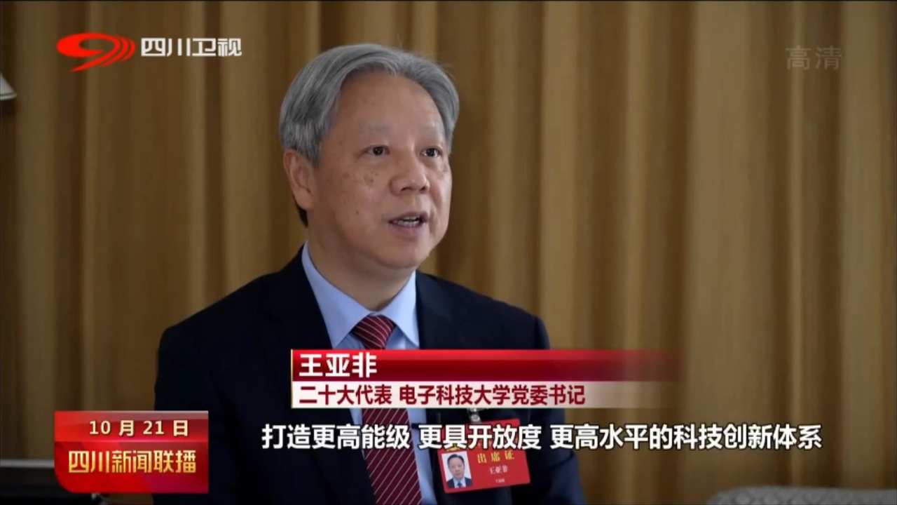 二十大代表 电子科技大学党委书记 王亚非:我们将以建设天府绛溪实验室为契机,打造更高能级、更具开放度、更高水平的科技创新体系,不断深化产学研的深度融合发展。