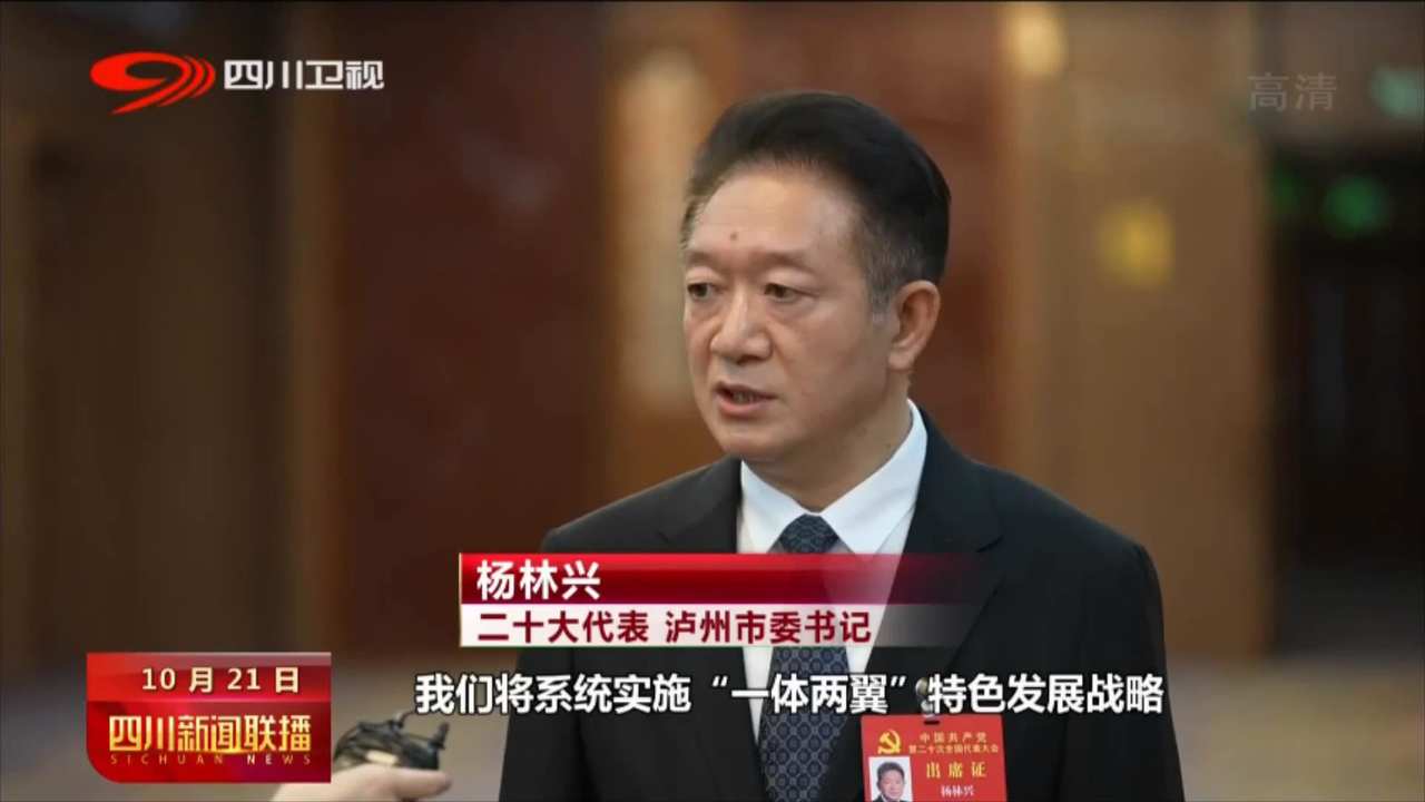 二十大代表 泸州市委书记 杨林兴:我们将系统实施“一体两翼”特色发展战略,持续做大经济总量,提升发展质量。合作而言,我们首先要联合川南四市,按照省委的要求,努力打造四川第二经济增长极,同时要积极地推动川南渝西融合发展,打造成渝地区双城经济圈第三增长极。