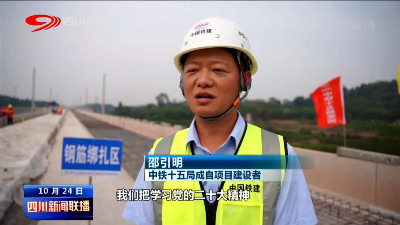 中铁十五局成自项目建设者 邵引明:我们把学习党的二十大精神转化为推进高铁建设的强大动力,高质量推进无砟轨道、路基、桥梁的建设,为项目如期实现铺轨打下坚实基础,我们也将以党的二十大精神为指引,为我国加快建设交通强国贡献力量。