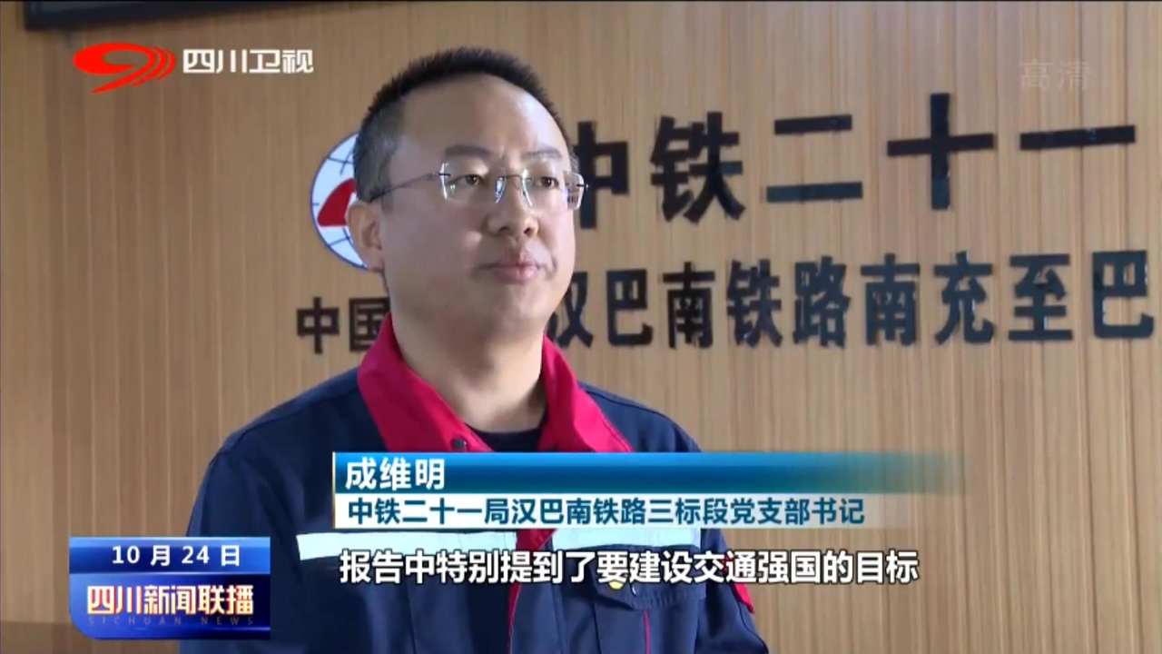 中铁二十一局汉巴南铁路三标段党支部书记 成维明:报告中特别提到要建设交通强国的目标,为我们指明了方向,也更加坚定了我们砥砺奋进的决心和信心。作为新时代铁路建设者,我们将牢记嘱托,全身心投入汉巴南铁路建设,为川东北革命老区交通事业快速发展贡献力量。