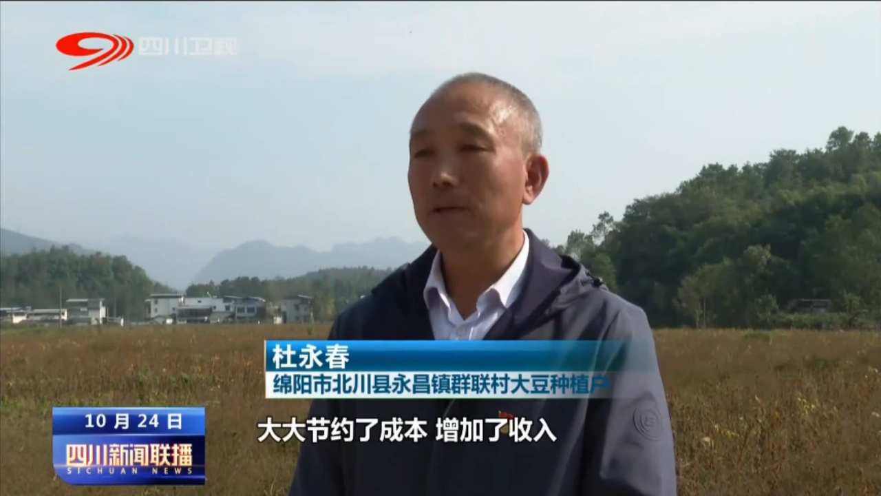 绵阳市北川县永昌镇群联村大豆种植户 杜永春:我200亩大豆两三天可以收完,大大节约了成本,增加了收入。习近平总书记在党的二十大报告中提出:要加快建设农业强国,我更有信心撸起袖子加油干,为端牢“中国饭碗”贡献力量。