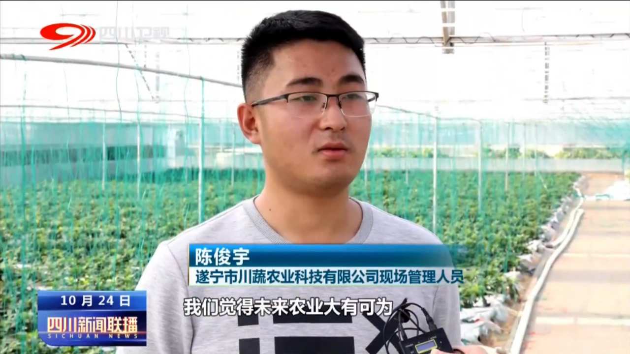 遂宁市川蔬农业科技有限公司现场管理人员 陈俊宇:党的二十大报告提出,坚持农业农村优先发展。我们作为新农人,我们觉得未来农业大有可为。像我们这个智慧大棚,比以前的露天种植产量提高了5倍。 在未来还可以提高更多。