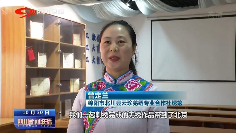 北川县云珍羌绣专业合作社绣娘 曾定兰:陈老师一回来就跟我们分享了,我们一起刺绣完成的羌绣作品带到了北京,让我感到非常地自豪和荣幸,作为年轻绣娘我也会更好地与陈老师一起传承优秀的民族文化,把指尖上的技能发挥得更好。