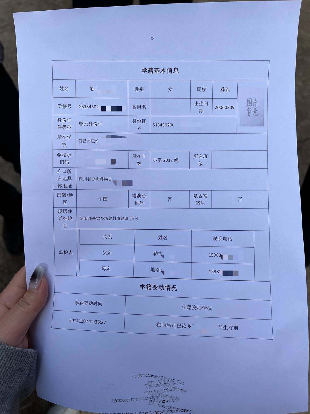 学校老师出示了阿依姐弟两人的学籍证明