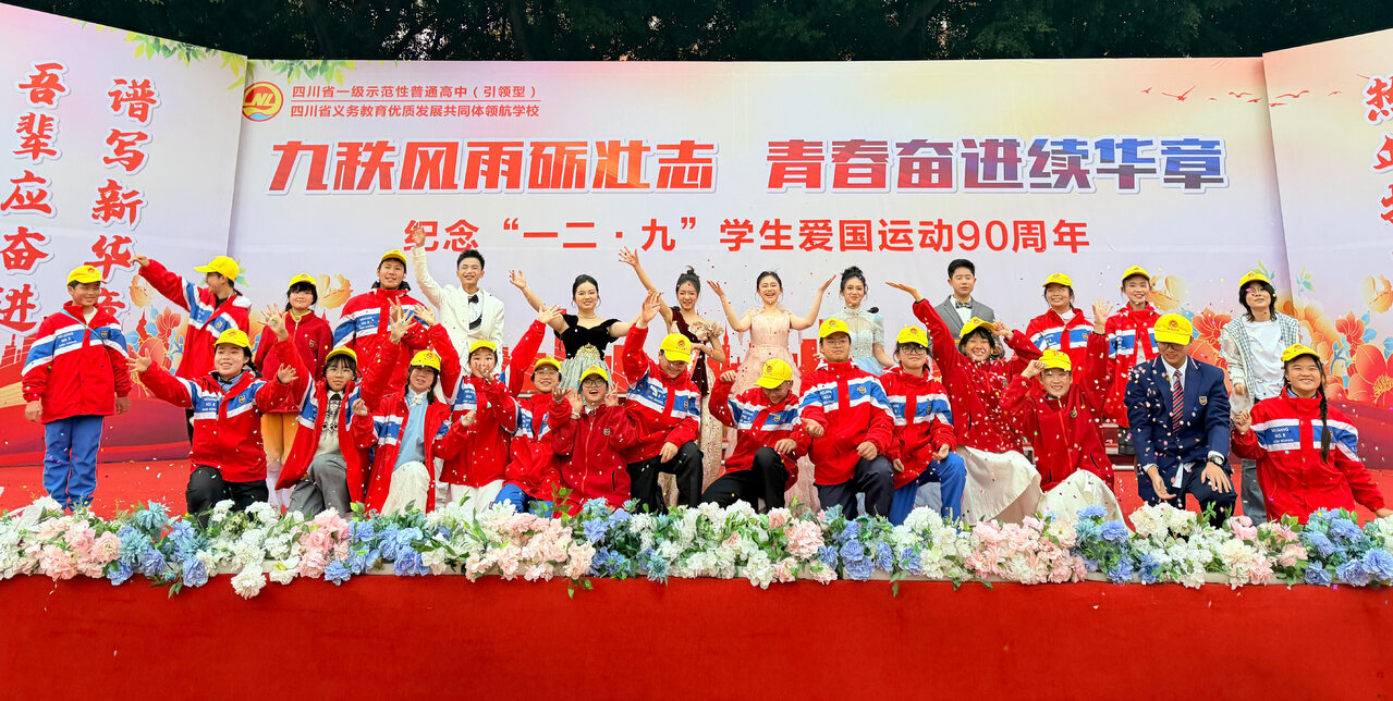时间:2025-12-09 18:54:02 来源:内江广播电视台为加强学校精神文明建设,丰富校园文化生活,更好地培育学生传承红色基因,争做时代新人。12月8号下午,内江六中兴隆校区,以 “九秩风雨砺壮志 青春奋进续华章” 为主题,举办纪念 “一二・九” 学生爱国运动 90 周年主题活动。